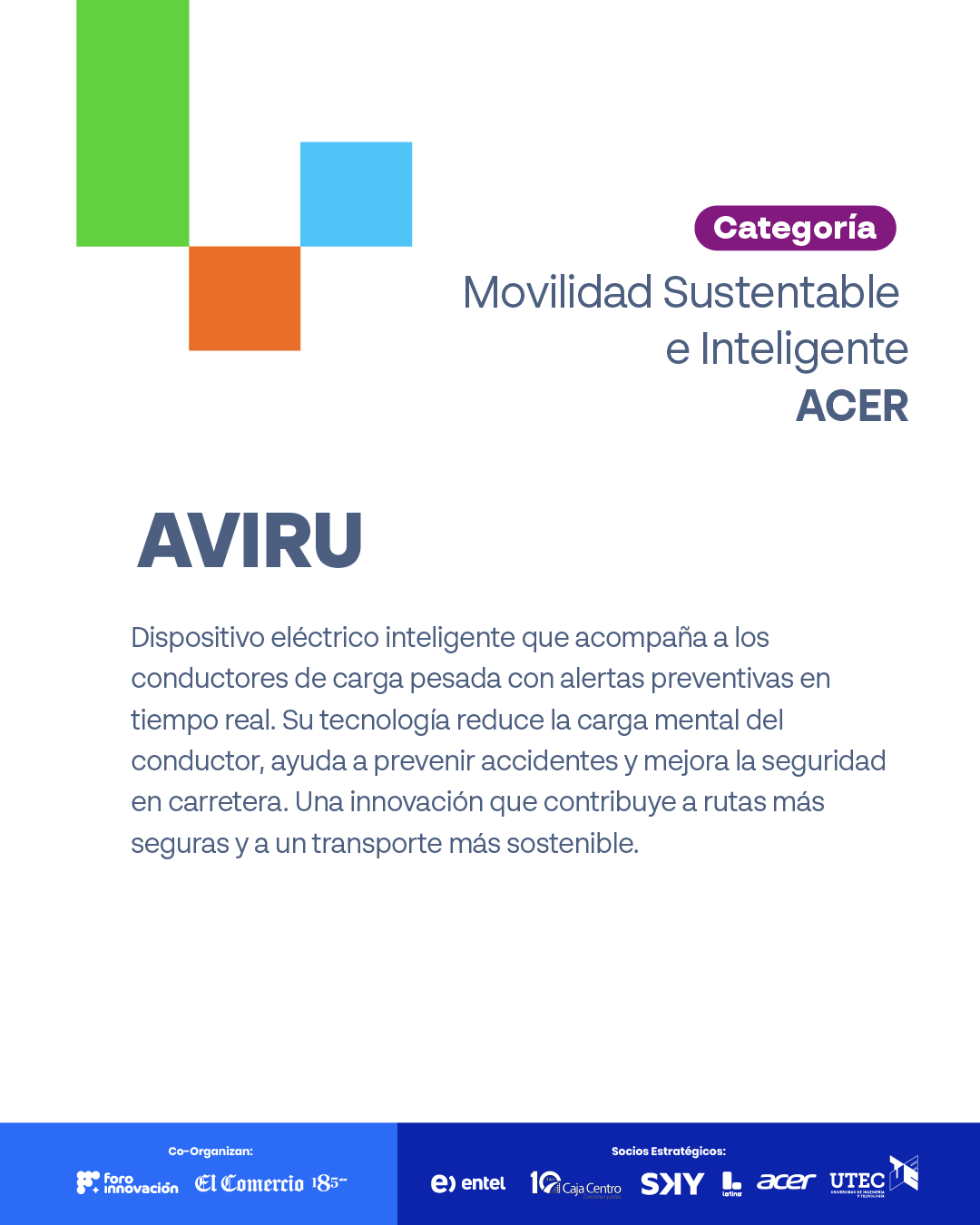 AVIRU es un dispositivo eléctrico inteligente que acompaña a los conductores de carga pesada con alertas preventivas en tiempo real.